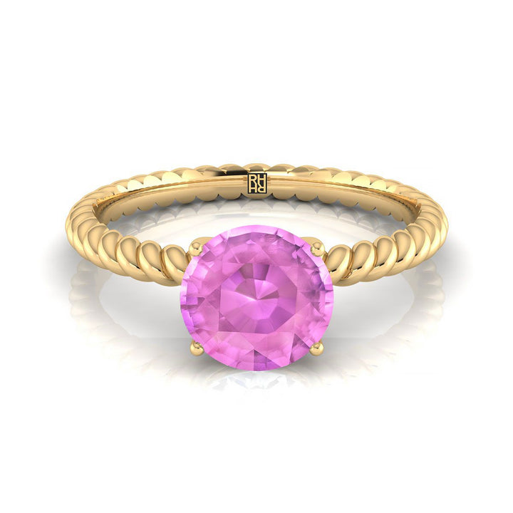 14k Yellow Gold Engagement Ring With 6 Mm Round Pink Sapphire Center Stone And Rope Design Shank