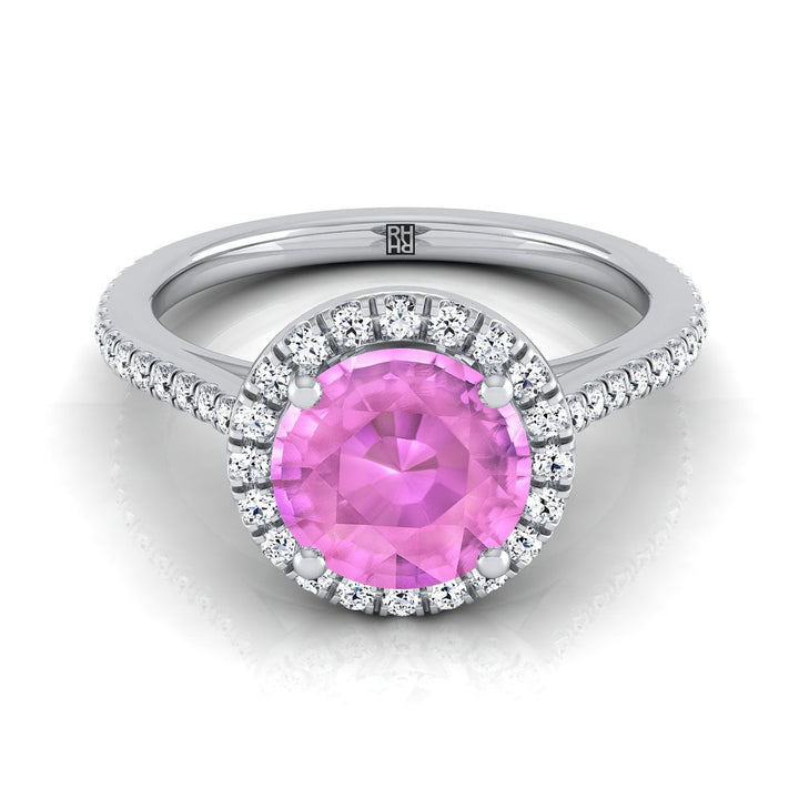 Platinum Engagement Ring With 6 Mm Round Pink Sapphire Center Stone And 50 Round Brilliant Diamonds Weighing 0.25ctw