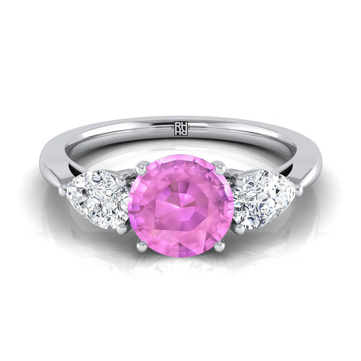 Platinum Round Brilliant Pink Sapphire Perfectly Matched Pear Shaped Three Diamond Engagement Ring -7/8ctw