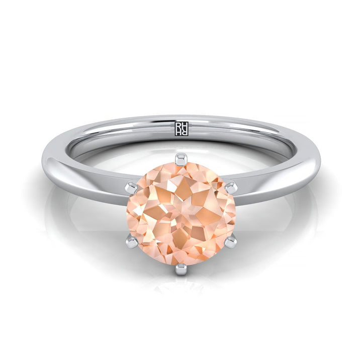 Platinum Round Brilliant Morganite Pinched Comfort Fit Claw Prong Solitaire Engagement Ring