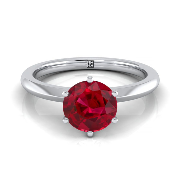 Platinum Round Brilliant Ruby Pinched Comfort Fit Claw Prong Solitaire Engagement Ring