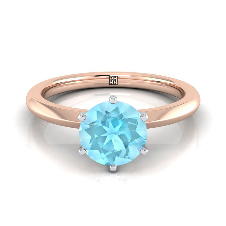 14K Rose Gold Round Brilliant Aquamarine Pinched Comfort Fit Claw Prong Solitaire Engagement Ring