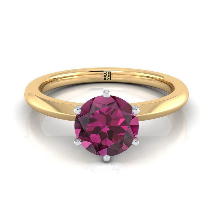 18K Yellow Gold Round Brilliant Garnet Pinched Comfort Fit Claw Prong Solitaire Engagement Ring