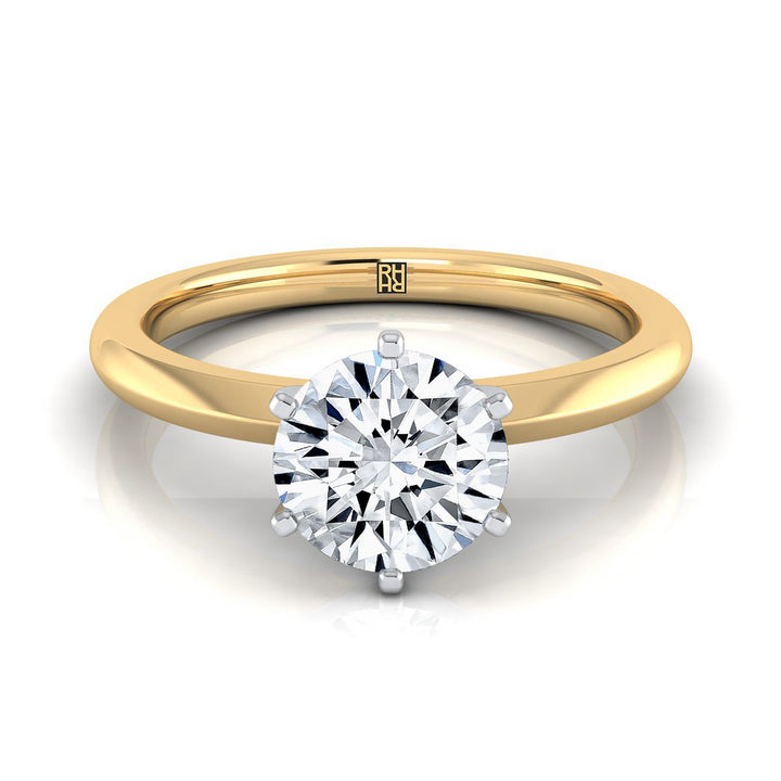 18K Yellow Gold Round Brilliant Pinched Comfort Fit Claw Prong Solitaire Engagement Ring