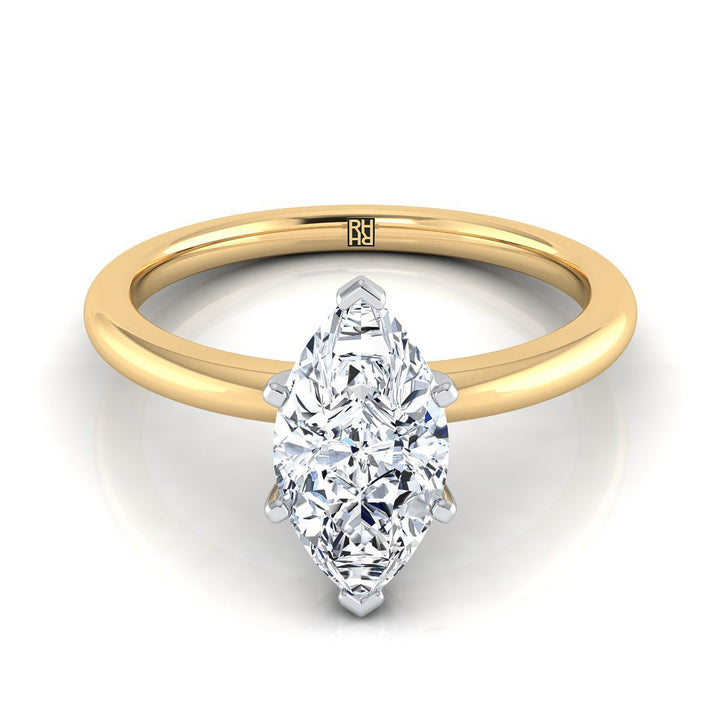 18K Yellow Gold Marquise Round Comfort Fit Claw Prong Solitaire Engagement Ring