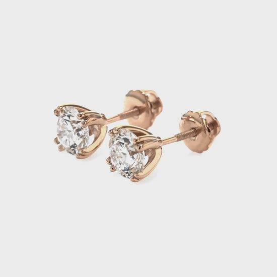 Diamond stud earrings make a stylish statement in beauty. These 14K gold or platinum stud earrings sparkle with a total weight of 7 carats conflict‑free round brilliant diamonds in D–F colorVS clarity, and come graded by the International Gemological Institute (IGI). Please select from the options.
