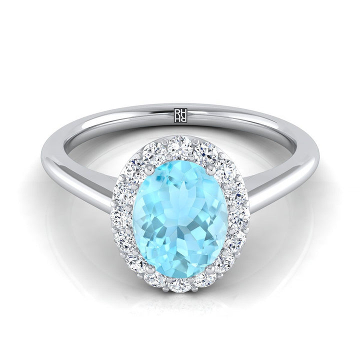 Platinum Oval Aquamarine Shared Prong Diamond Halo Engagement Ring -1/5ctw