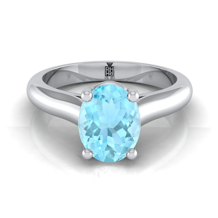 14K White Gold Oval Aquamarine Pinched Comfort Fit Claw Prong Solitaire Engagement Ring