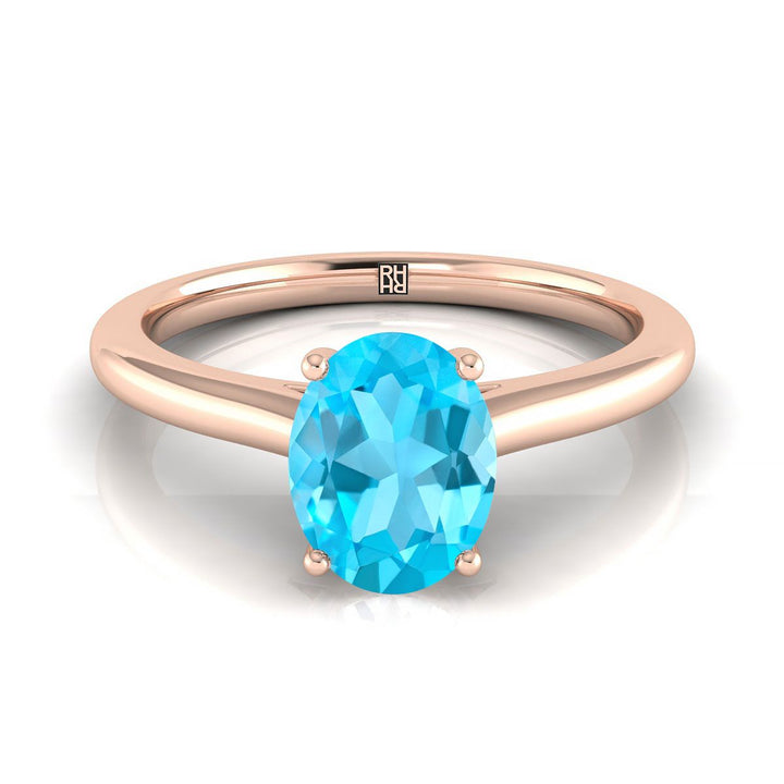 14K Rose Gold Oval Swiss Blue Topaz Pinched Comfort Fit Claw Prong Solitaire Engagement Ring