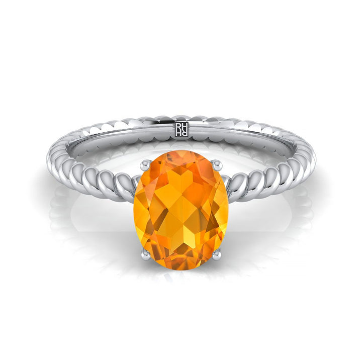 18k White Gold Engagement Ring With 8 X 6 Mm Oval Citrine Center Stone And Rope Design Shank