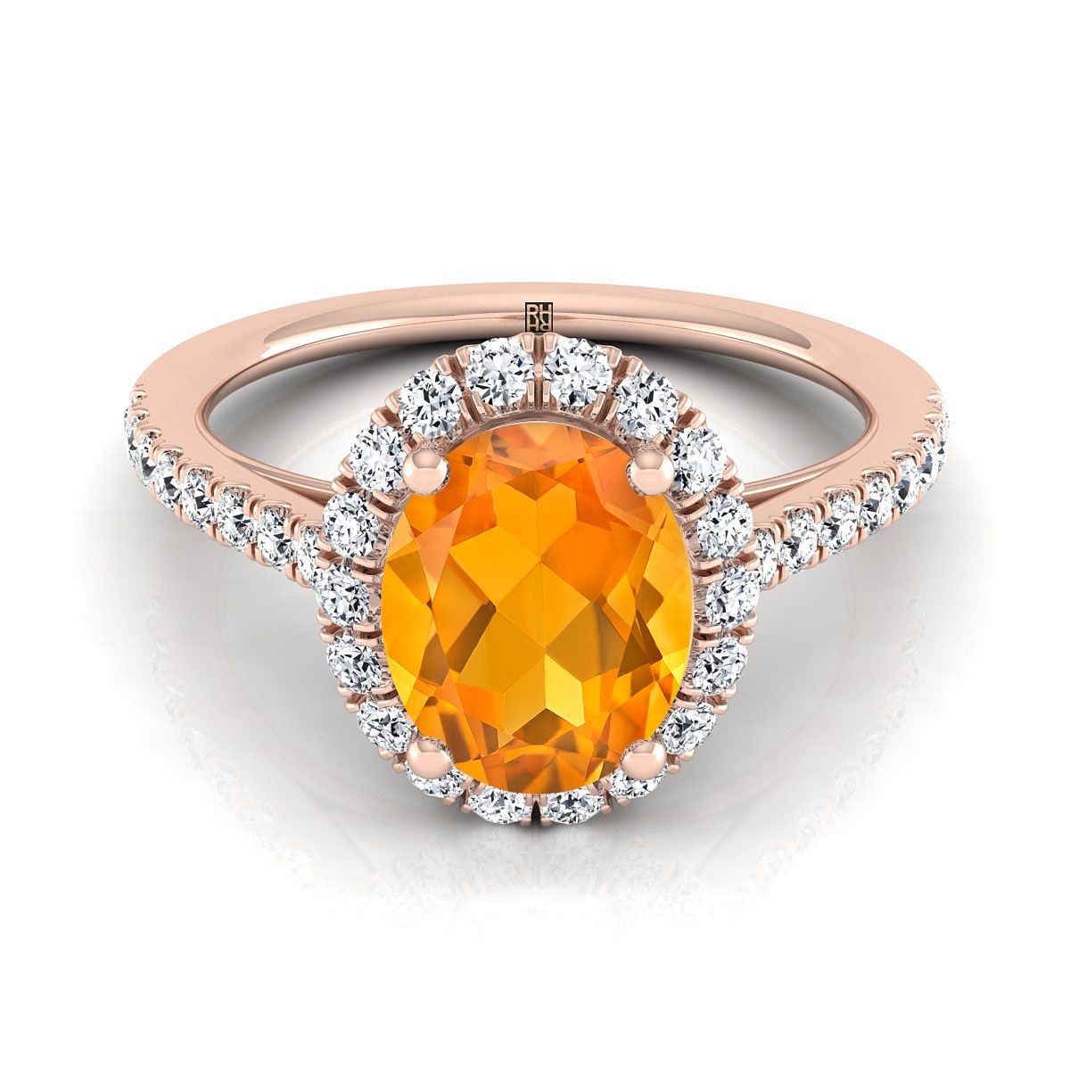 14K Rose Gold Oval Citrine Petite Halo French Diamond Pave Engagement Ring -3/8ctw