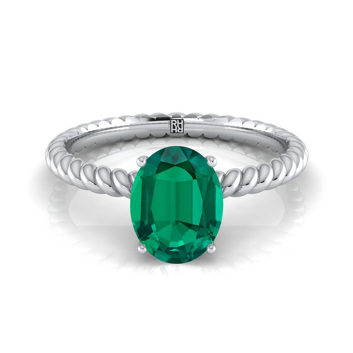 Platinum Engagement Ring With 8 X 6 Mm Oval Emerald Center Stone And Rope Design Shank