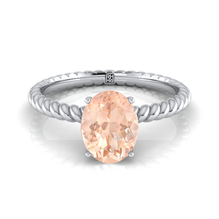 Platinum Engagement Ring With 8 X 6 Mm Oval Morganite Center Stone And Rope Design Shank