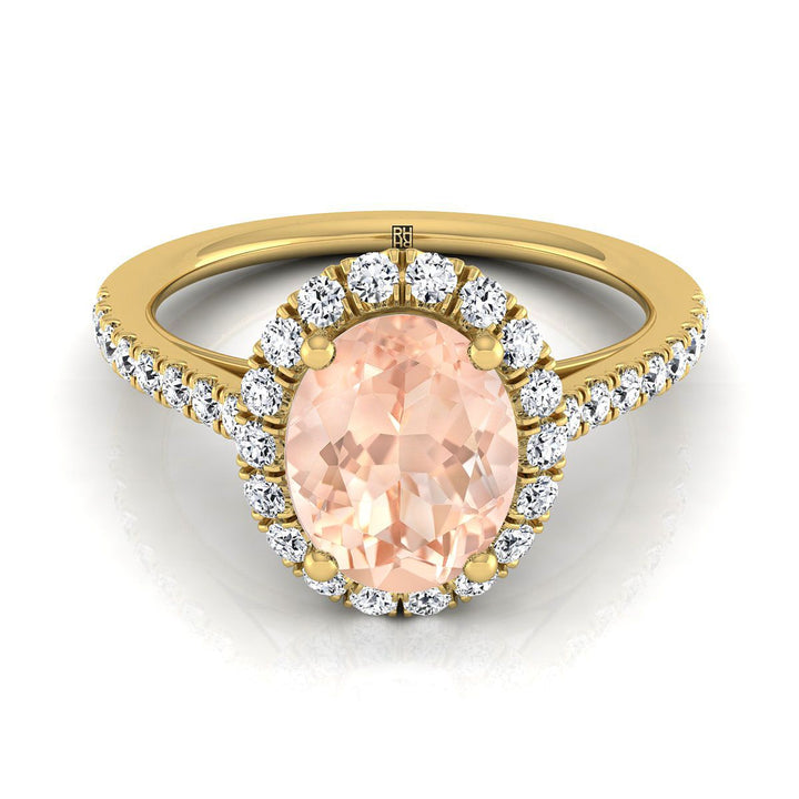 14K Yellow Gold Oval Morganite Petite Halo French Diamond Pave Engagement Ring -3/8ctw