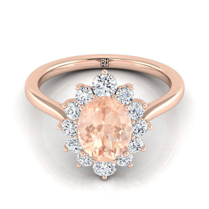 14K Rose Gold Oval Morganite Floral Diamond Halo Engagement Ring -1/2ctw