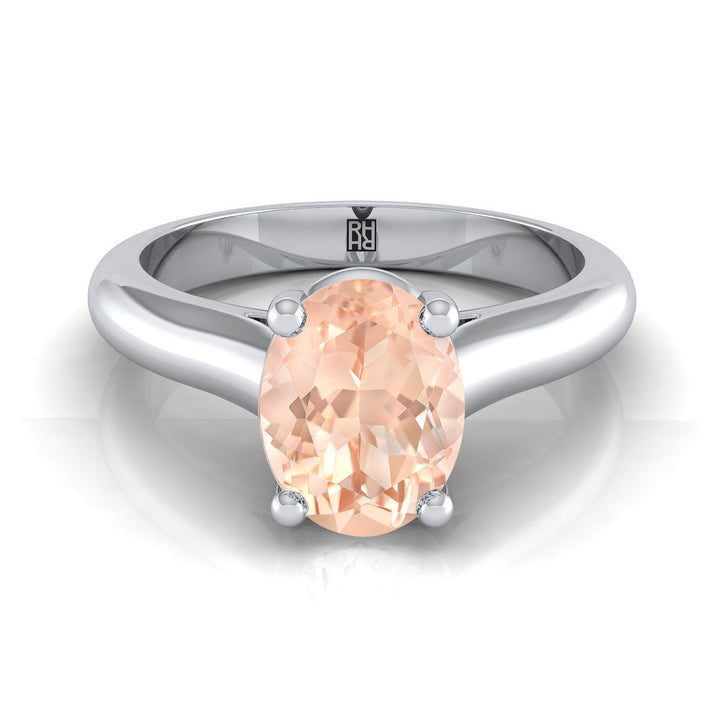 14K White Gold Oval Morganite Pinched Comfort Fit Claw Prong Solitaire Engagement Ring