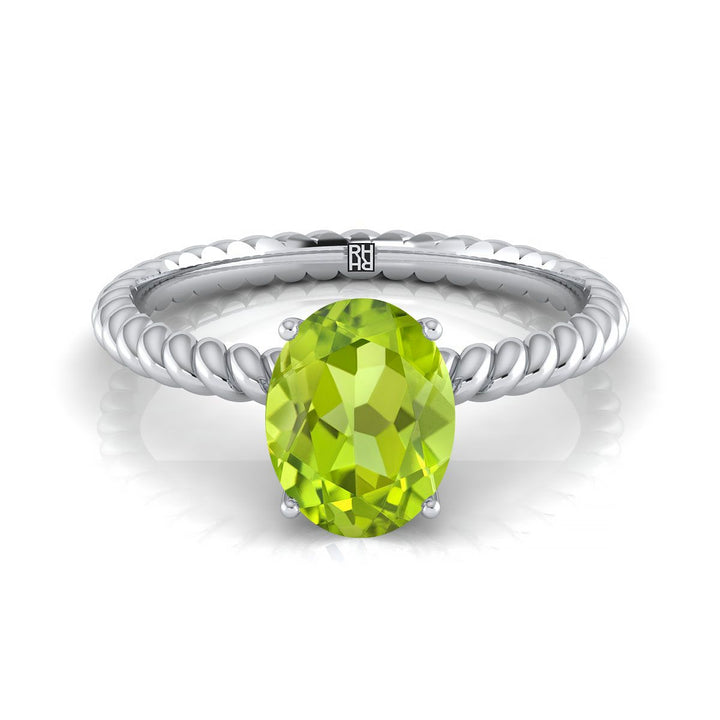 14k White Gold Engagement Ring With 8 X 6 Mm Oval Peridot Center Stone And Rope Design Shank