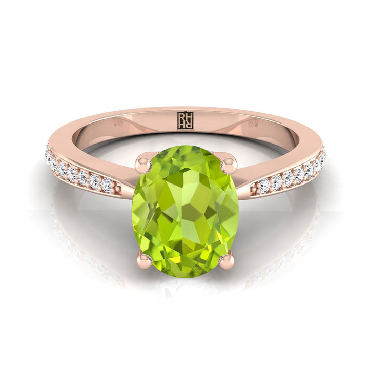 14K Rose Gold Oval Peridot Tapered Pave Diamond Engagement Ring -1/8ctw