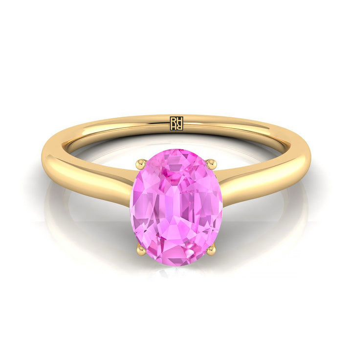 18k Yellow Gold Engagement Ring With 8 X 6 Mm Oval Pink Sapphire Center Stone And Bezel Design Shank