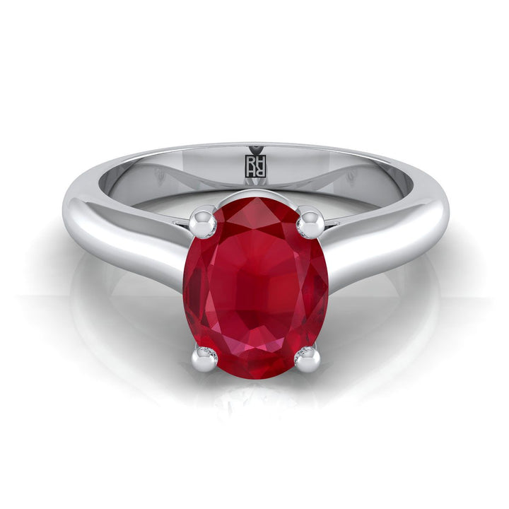 14K White Gold Oval Ruby Pinched Comfort Fit Claw Prong Solitaire Engagement Ring
