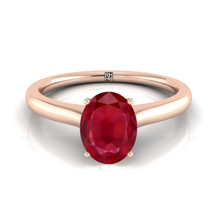 14k Rose Gold Engagement Ring With 8 X 6mm Oval Ruby Center Stone And Bezel Design Shank