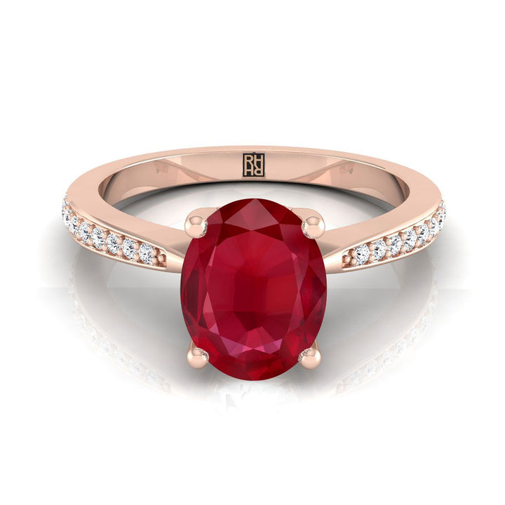 14K Rose Gold Oval Ruby Tapered Pave Diamond Engagement Ring -1/8ctw