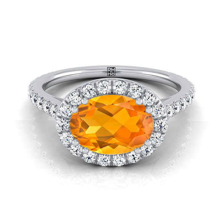 Platinum Oval Citrine Horizontal Fancy East West Diamond Halo Engagement Ring -1/2ctw