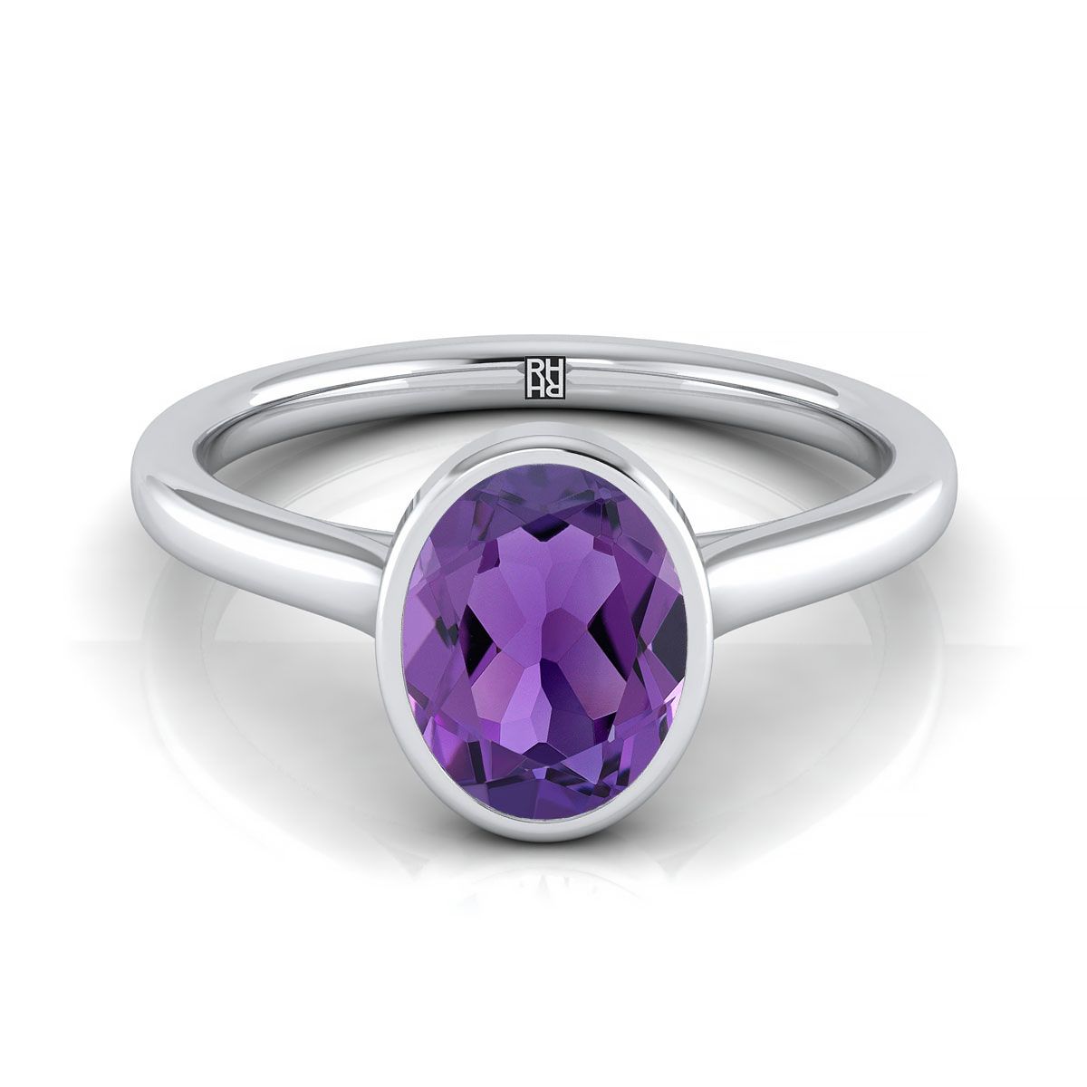 14K White Gold Oval Amethyst Simple Bezel Solitaire Engagement Ring