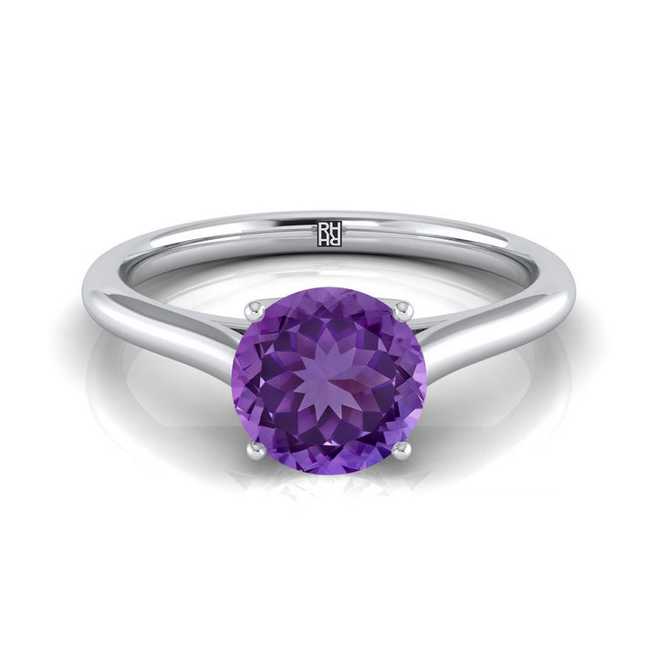 18K White Gold Round Brilliant Amethyst Cathedral Style Comfort Fit Solitaire Engagement Ring