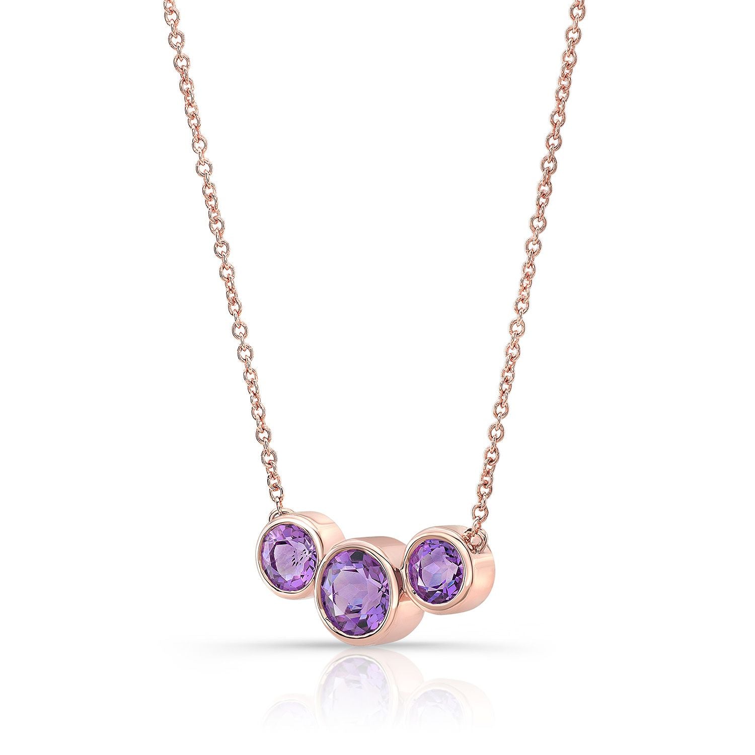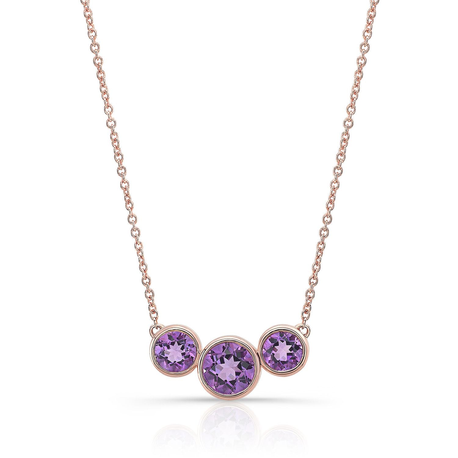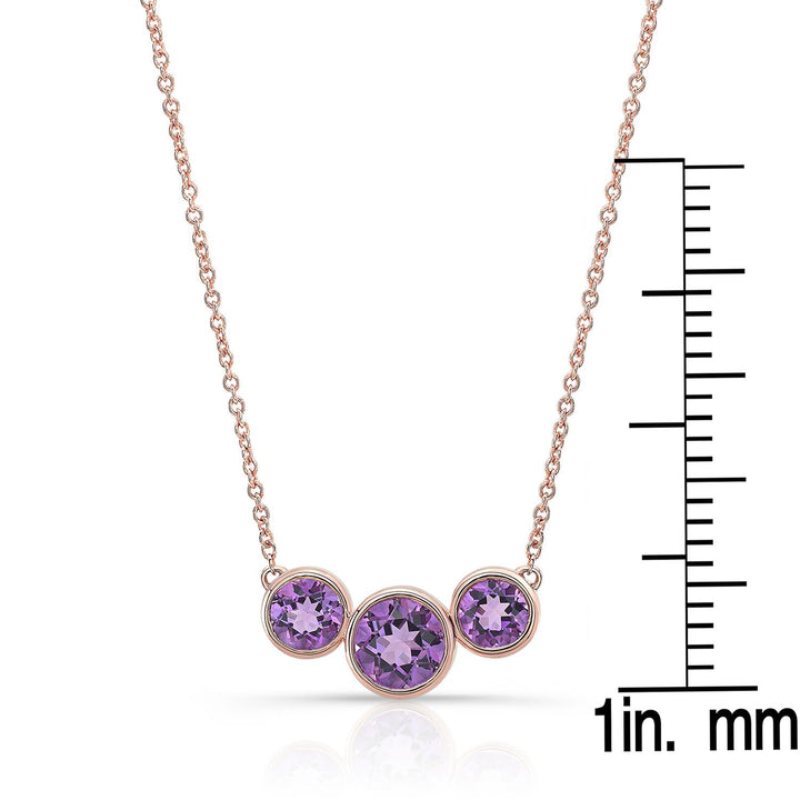 14k Rose Gold Necklace With 1 Round Amethyst At 5mm And 2 Round Amethysts At 4mm