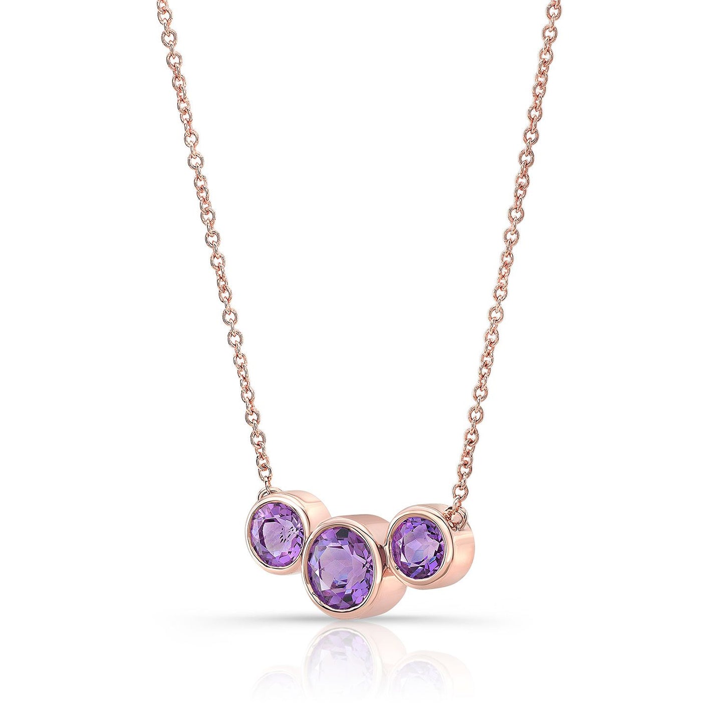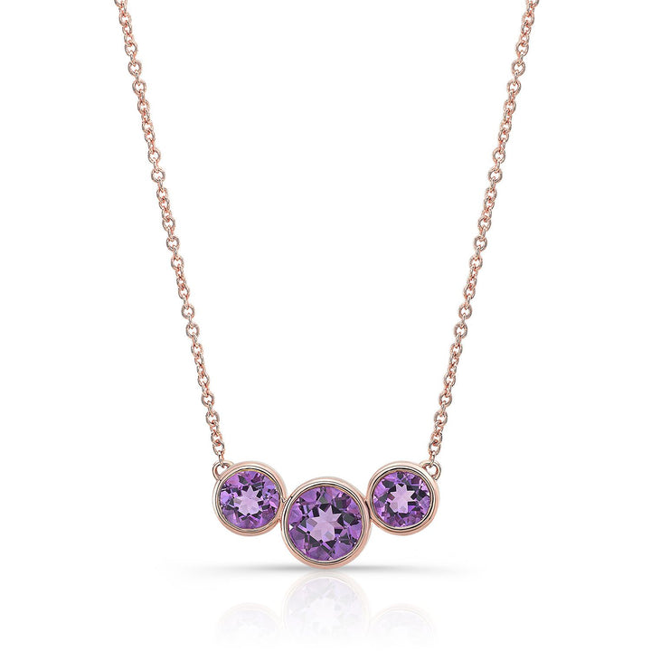 Amethyst Trio Circle Bezel Necklace In 14k Rose Gold