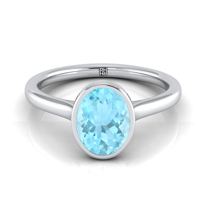 18K White Gold Oval Aquamarine Simple Bezel Solitaire Engagement Ring