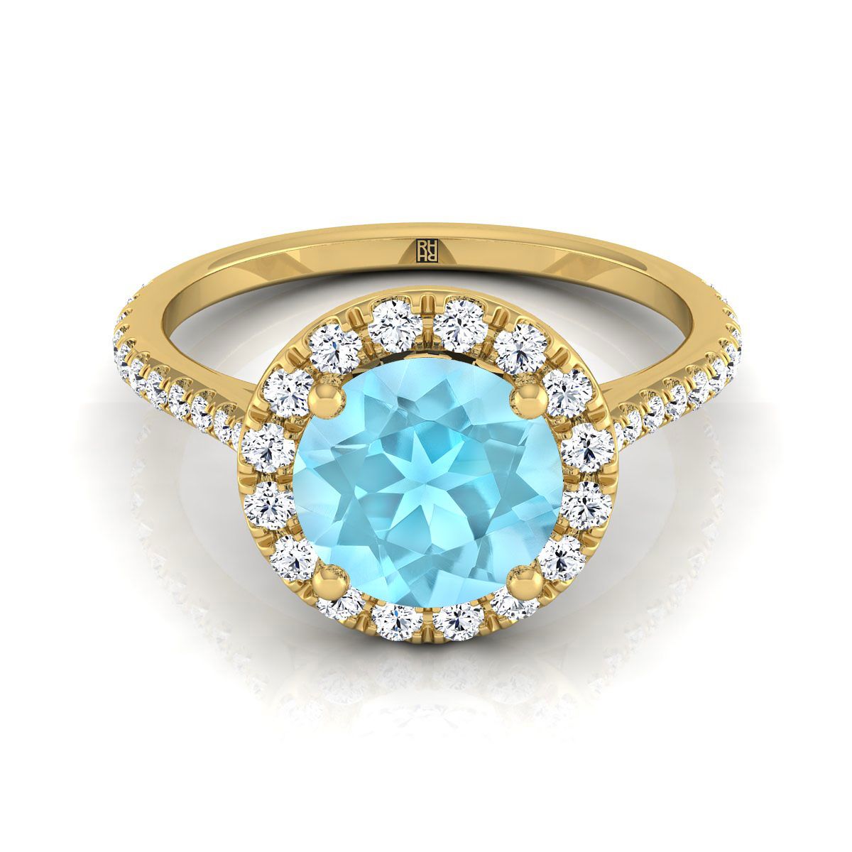 18k Yellow Gold Engagement Ring With 6 Mm Round Aquamarine Center Stone And 40 Round Brilliant Diamonds Weighing 0.40ctw