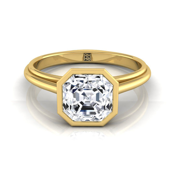 Understated Elegance, This Asscher Cut Diamond Engagement Ring Setting Showcases A Bezel Set Diamond Solitaire In A Classic 14k Yellow Gold Setting.