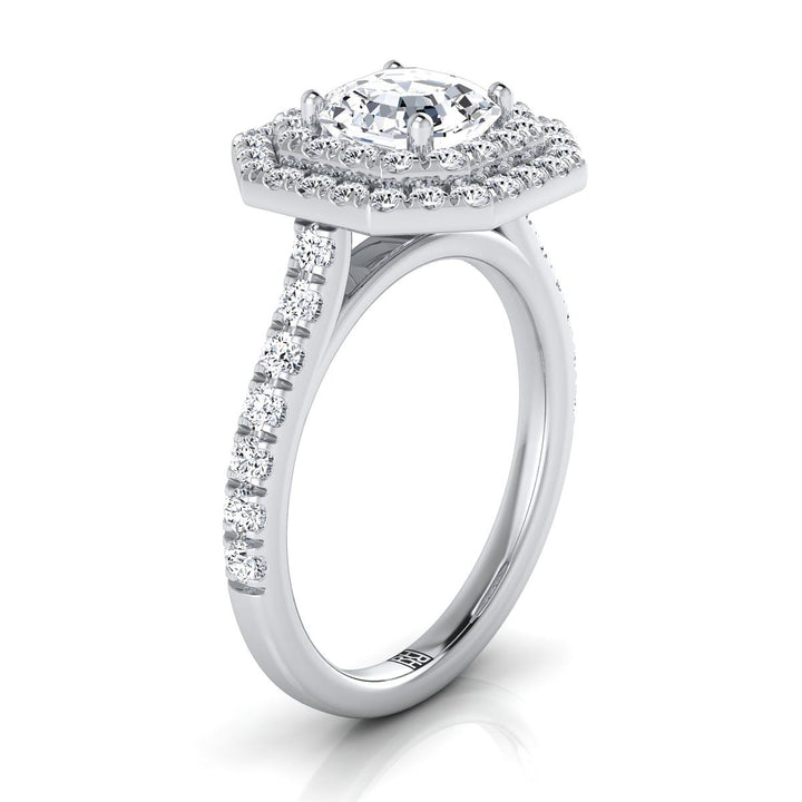 Platinum Asscher Cut Double Pave Halo with Linear Diamond Engagement Ring -7/8ctw