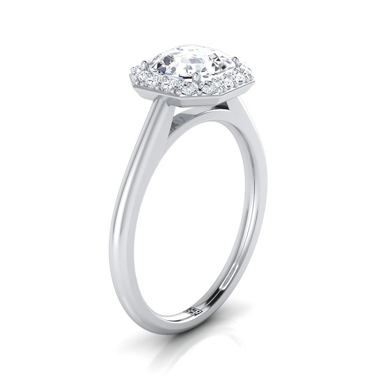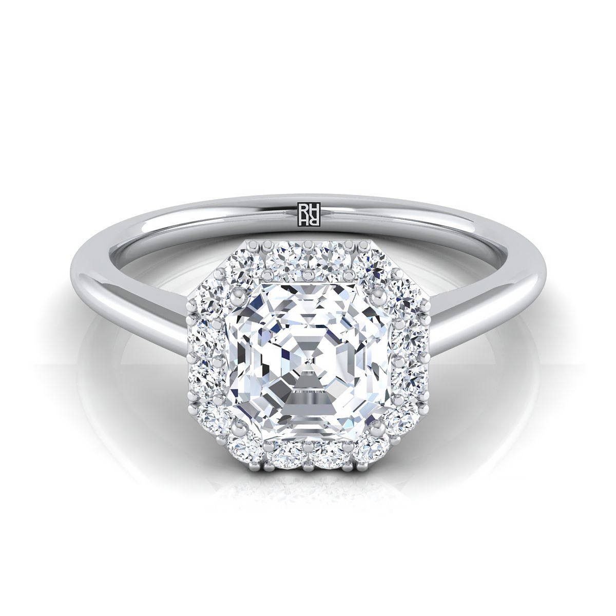 14K White Gold Asscher Cut Diamond Shared Prong Halo Engagement Ring -1/5ctw
