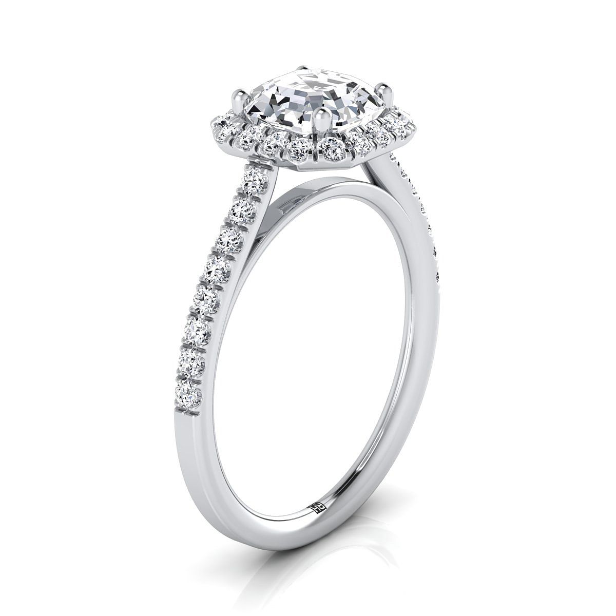 Platinum Asscher Cut Diamond Petite Halo French Pave Engagement Ring -3/8ctw