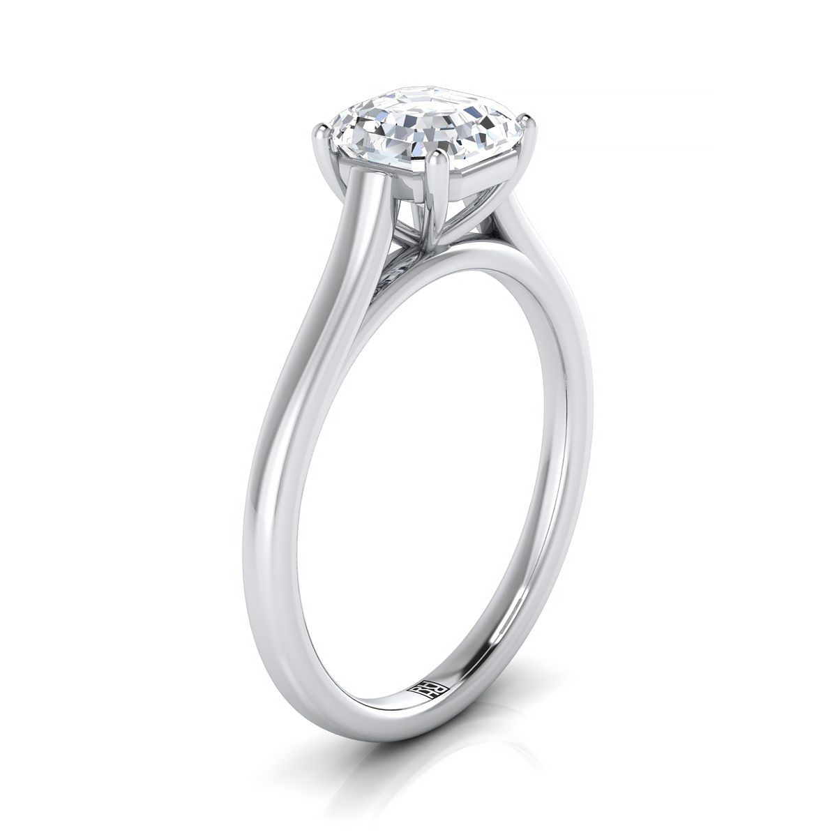 18K White Gold Asscher Cut Elegant Cathedral Solitaire Engagement Ring