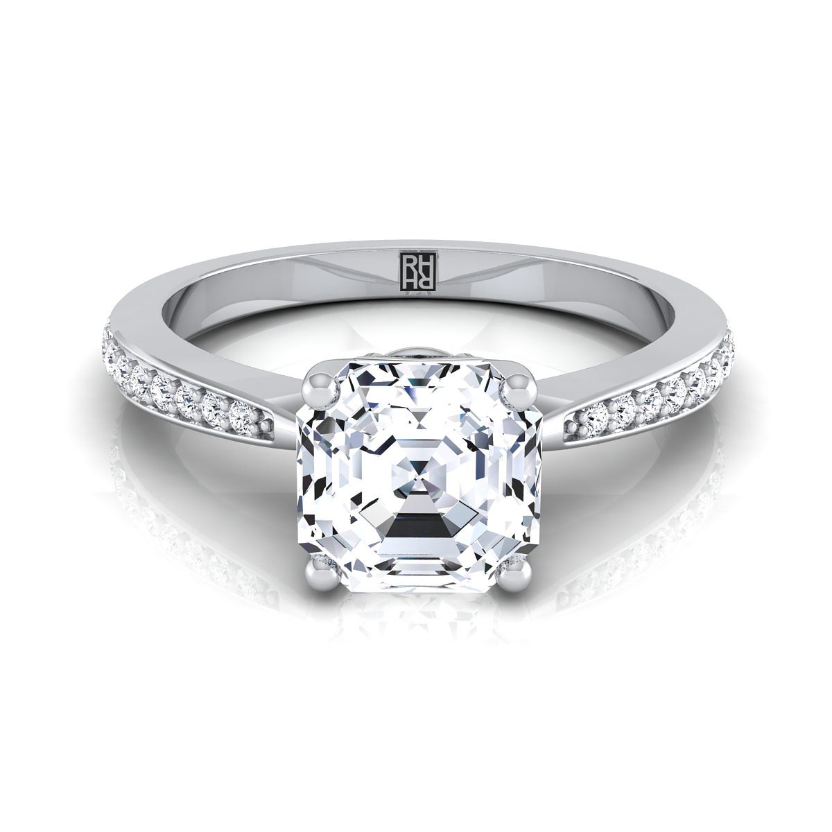 14K White Gold Asscher Cut Diamond Tapered Pave Engagement Ring -1/8ctw