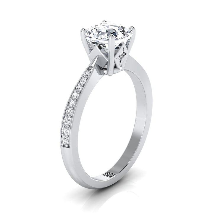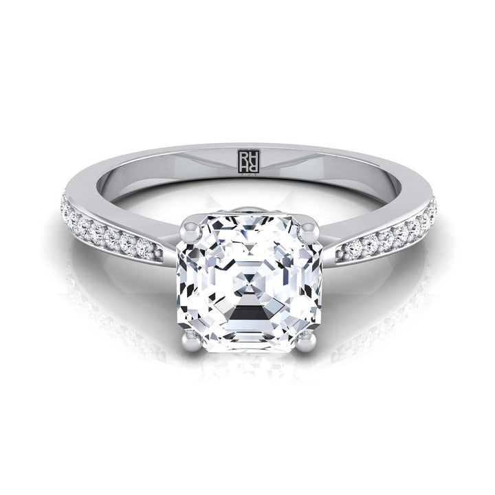 Classic And Elegant, This Asscher Cut Diamond Engagement Ring Setting Showcases Brilliant Cut Diamonds (h-i/vs 0.125ctw) Exquisitely Pave Set In 14k White Gold