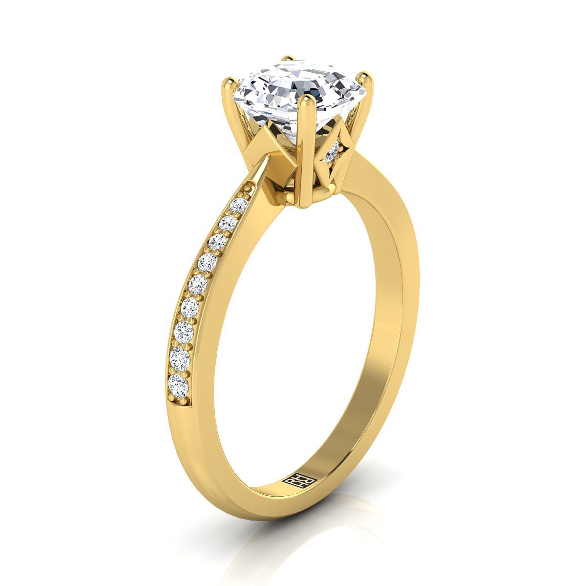 Classic And Elegant, This Asscher Cut Diamond Engagement Ring Setting Showcases Brilliant Cut Diamonds (h-i/vs 0.125ctw) Exquisitely Pave Set In 14k Yellow Gold