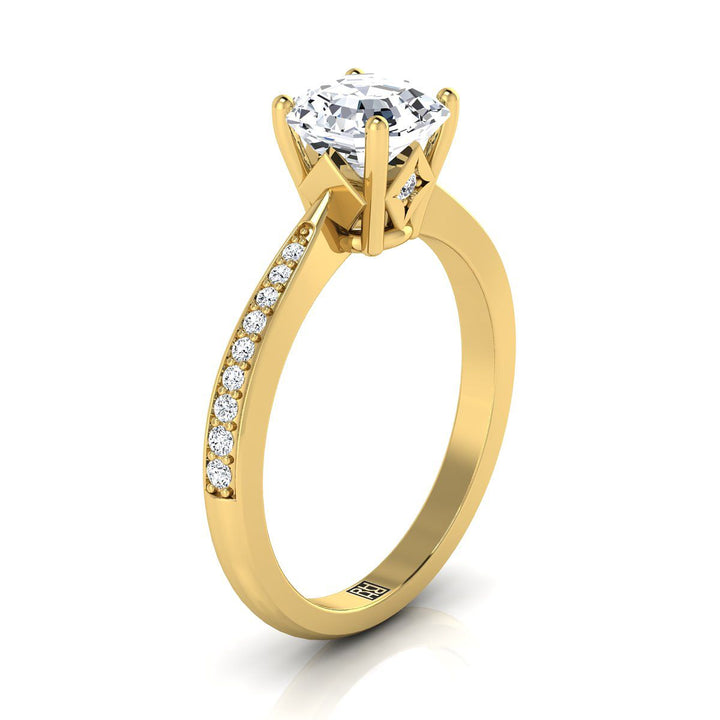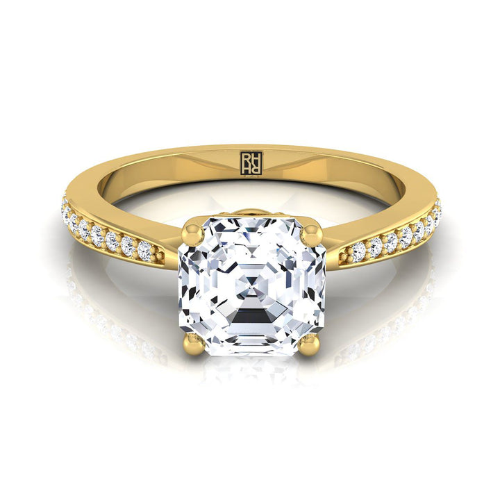 18K Yellow Gold Asscher Cut Diamond Tapered Pave Engagement Ring -1/8ctw