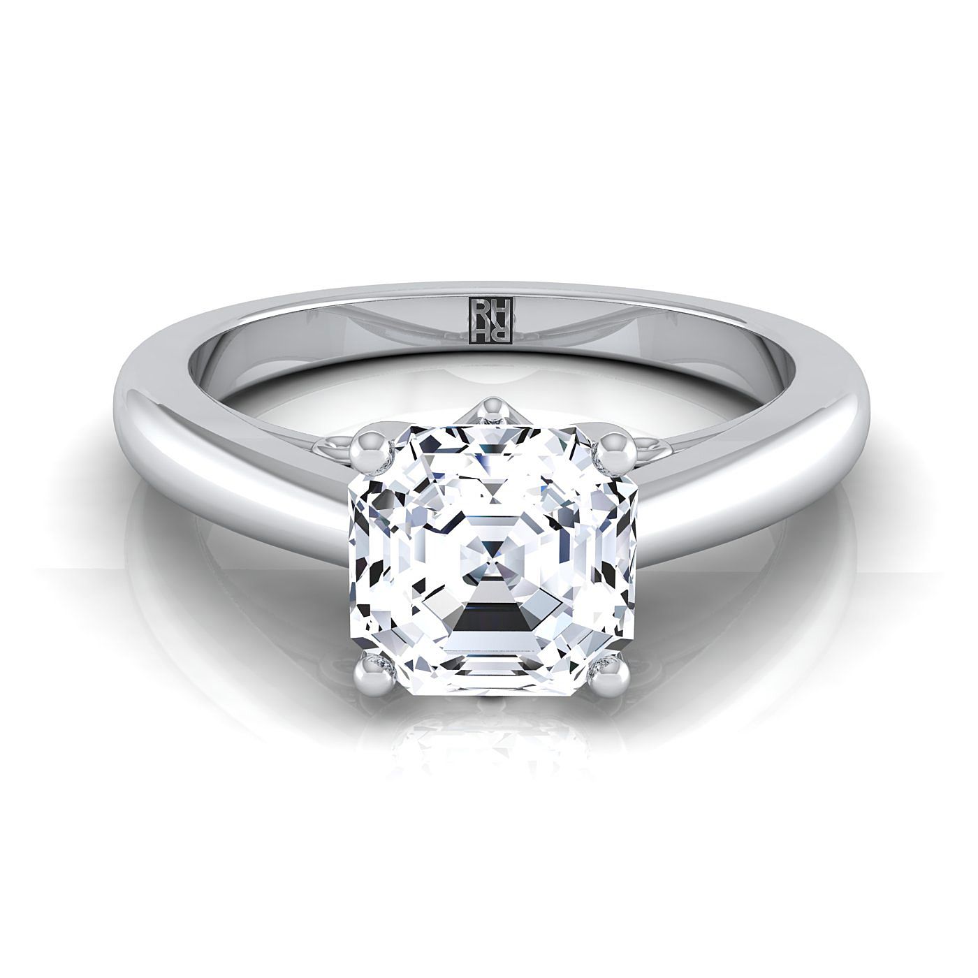 14K White Gold Asscher Cut Scroll Gallery Comfort Fit Solitaire Engagement Ring