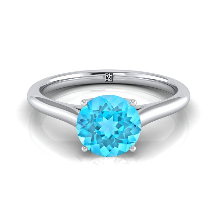 14K White Gold Round Brilliant Swiss Blue Topaz Cathedral Style Comfort Fit Solitaire Engagement Ring