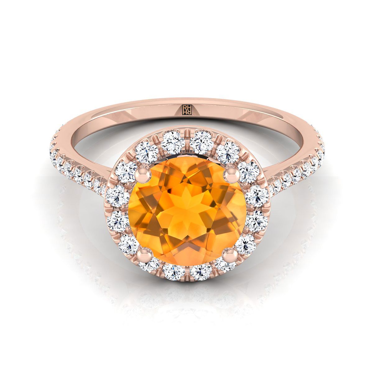 14k Rose Gold Engagement Ring With 6 Mm Round Citrine Center Stone And 40 Round Brilliant Diamonds Weighing 0.40ctw