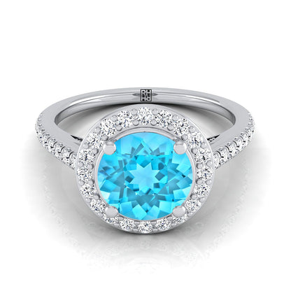Platinum Round Brilliant Swiss Blue Topaz French Pave Halo Secret Gallery Diamond Engagement Ring -3/8ctw