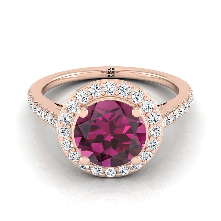 14K Rose Gold Round Brilliant Garnet French Pave Halo Secret Gallery Diamond Engagement Ring -3/8ctw