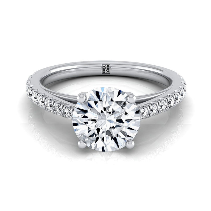 18K White Gold Round Brilliant Diamond French Pave Cathedral Style Solitaire Engagement Ring -1/4ctw