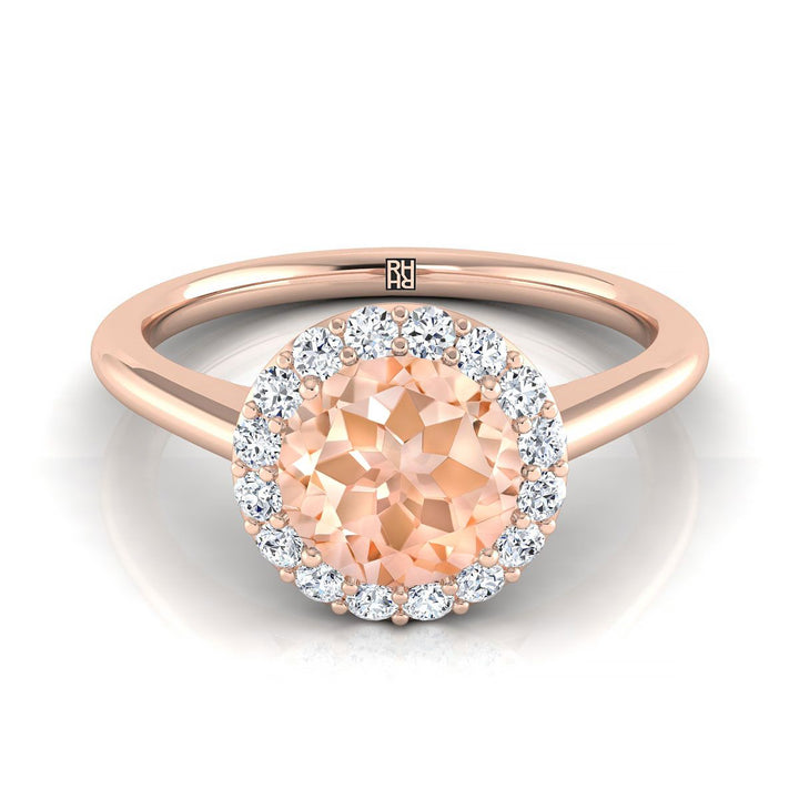 14K Rose Gold Round Brilliant Morganite Shared Prong Diamond Halo Engagement Ring -1/5ctw