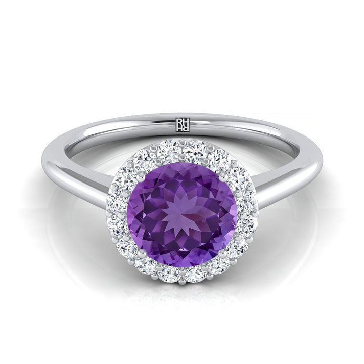 Platinum Round Brilliant Amethyst Shared Prong Diamond Halo Engagement Ring -1/5ctw